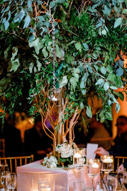 These huge gold tusk centerpieces looked incredible in such a large space.